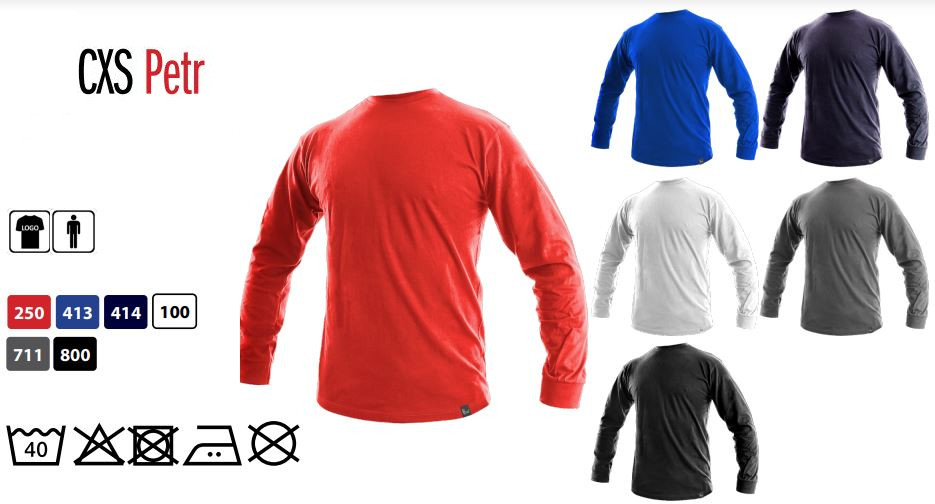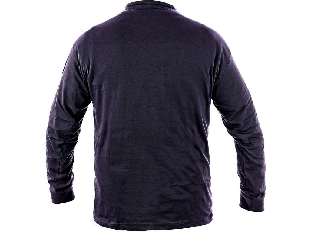 Koszulka męska z długim rękawem, okrągły dekolt. Dekolt i ramiona ze wzmacniającym paskiem, boki bez bocznych szwów i rękawy zakończone mankietem. Wykończenie silikonowe zapewnia trwałość rozmiarową i redukuje pilling. Przeznaczone do używania w pracy i na czas wolny.