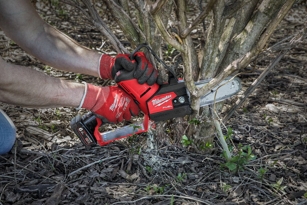 M12 FUEL™ HATCHET™ Pilarka łańcuchowa do gałęzi zapewnia doskonałą kontrolę i dostęp, ma moc do cięcia twardego drewna o grubości do 75 mm i umożliwia wykonanie do 120 cięć na jednym ładowaniu akumulatora M12 B4