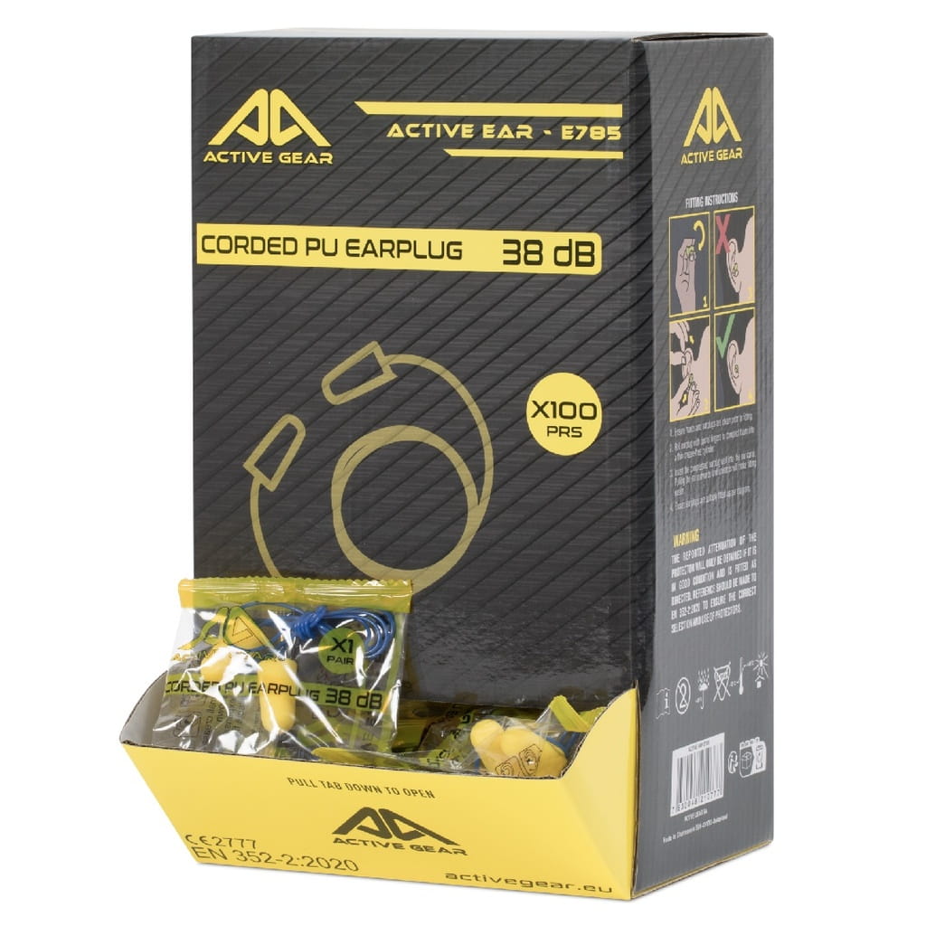 Active EAR E785 to profesjonalne przewodowe zatyczki do uszu z pianki poliuretanowej (PU), które zapewniają maksymalną ochronę słuchu nawet w najtrudniejszych warunkach pracy. Dzięki wysokiemu współczynnikowi tłumienia SNR 38 dB, skutecznie redukują hałas w środowiskach przemysłowych, warsztatach, halach produkcyjnych, a także podczas pracy na zewnątrz.