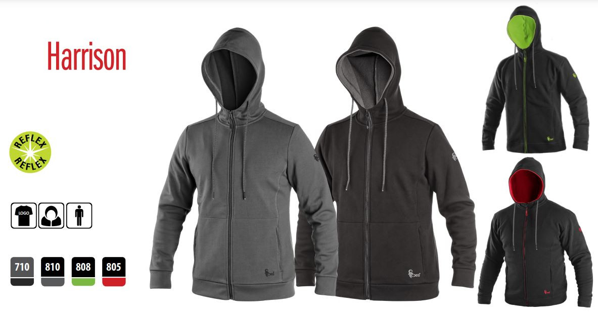Męska bluza na zamek, pas i rękawy zakończone mankietem, boczne kieszenie na zamek, sznurówki odblaskowe. Wykończenie silikonowe zapewnia trwałość rozmiarową i redukuje pilling. Przeznaczone do używania w pracy i na czas wolny. Nadaje się do nadruku i haftu.
