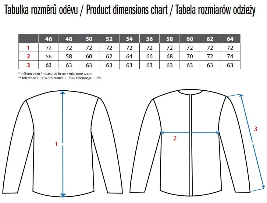 | Rozmiar | 46; 48; 50; 52; 54; 56; 58; 60; 62; 64 |