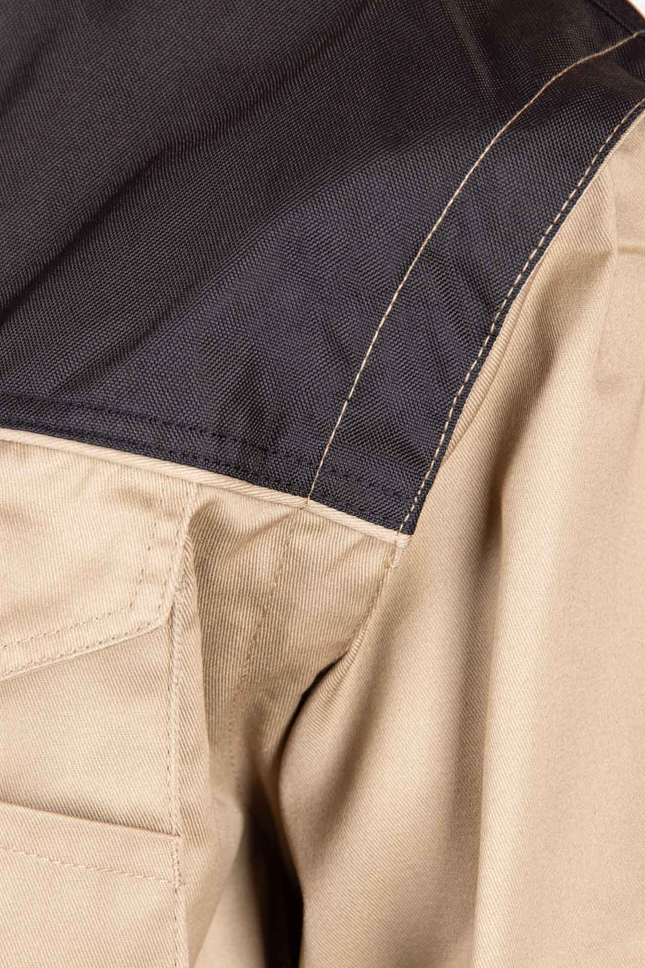 Budowa/szycie: podwójne szwy, szyte widoczną, mocną nicią, duża ilość ryglówek w miejscach szczególnie narażonych na rozprucie, transpiratory powietrza, dodatkowe wzmocnienia na łokciach z materiału OXFORD, wstawki kolorystyczne, lamówki kolorystyczne, w górniej części pleców siateczka, posiada zaszewki na plecach zwiększające swobodę ruchów, na ramionach wzmocnienia z materiału OXFORD,