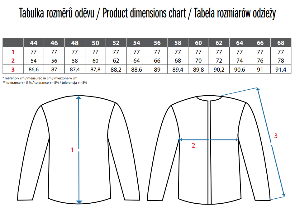 | Rozmiar | 46; 48; 50; 52; 54; 56; 58; 60; 62; 64 |