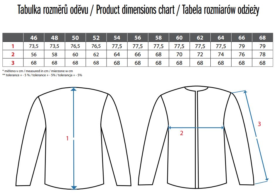 | Rozmiar | 46; 48; 50; 52; 54; 56; 58; 60; 62; 64 |