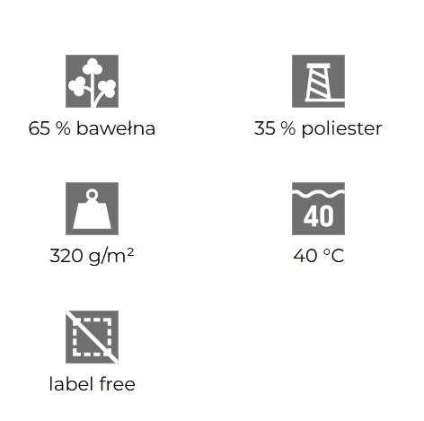 Terry, czesana strona wewnętrzna: 65 % bawełna, 35 % poliester