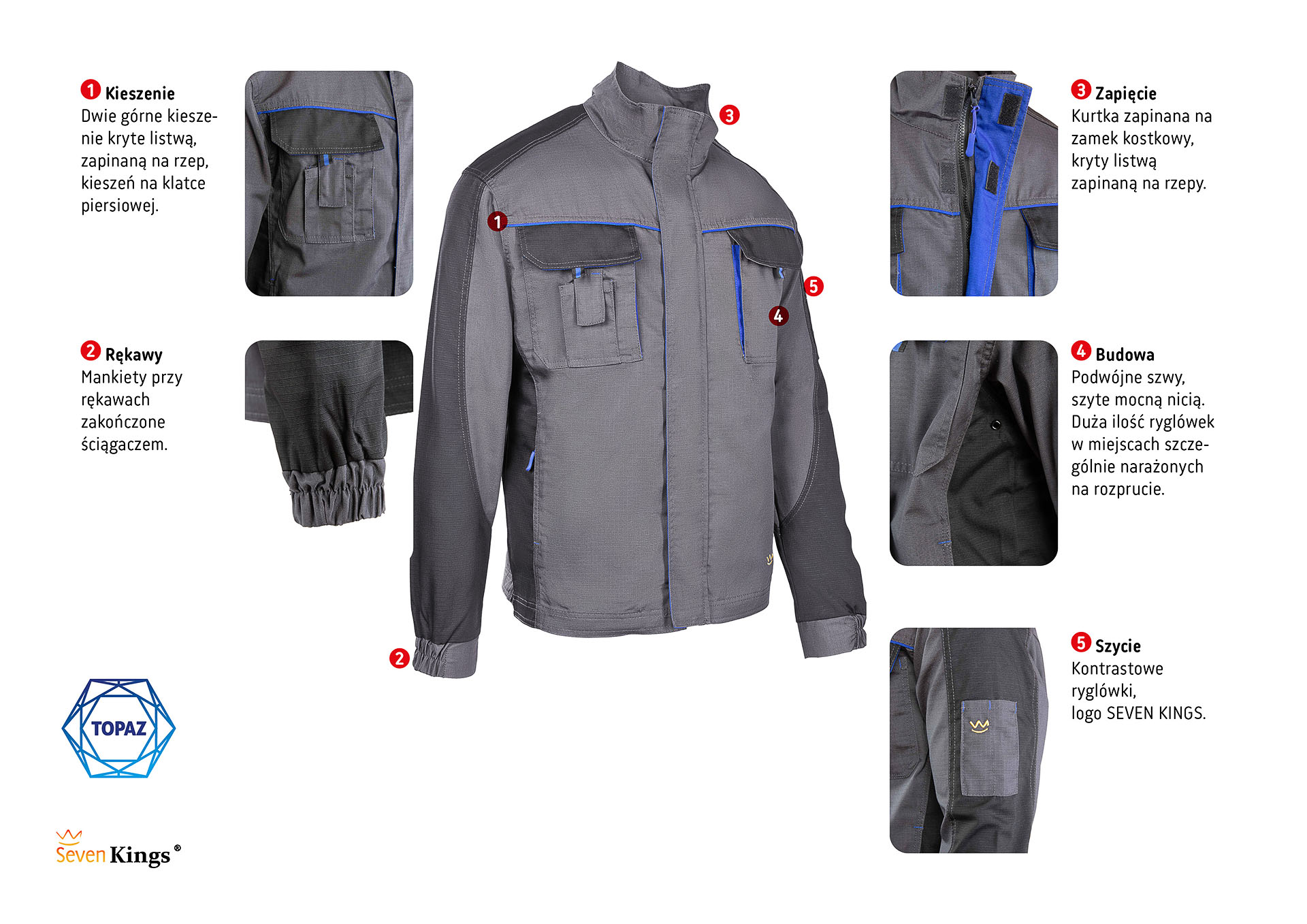 Bluza robocza męska Seven Kings Topaz stalowa sprawdza się w wymagających warunkach, a także podczas codziennych zadań. Zapewnia wysoką trwałość oraz komfort, które doceniają profesjonaliści z wielu branż.