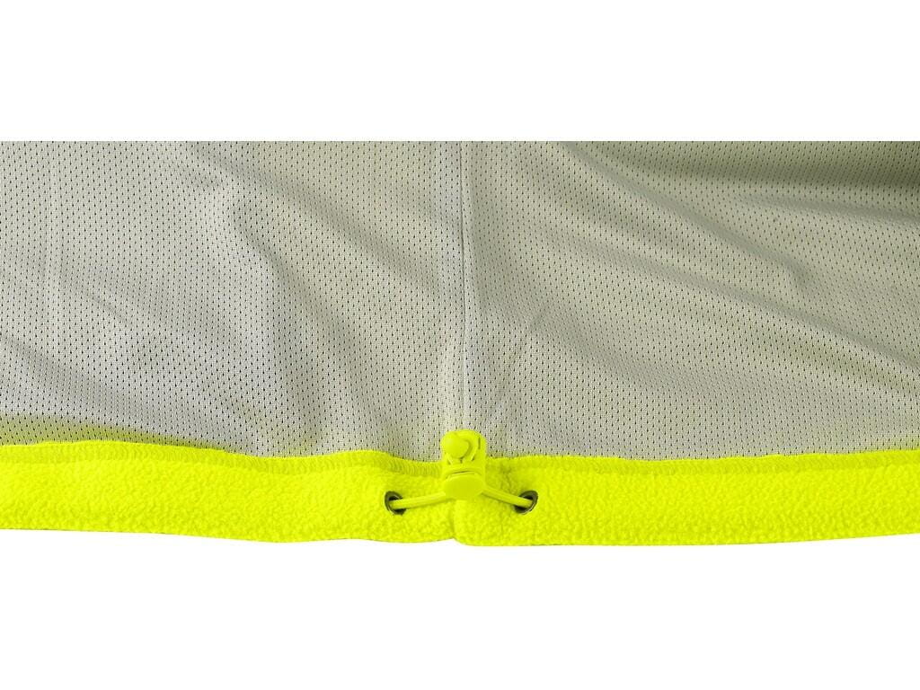 Męska kurtka ostrzegawcza z polaru, paski odblaskowe. Mankiet w gumkę, kieszeń na piersi zapinana na zamek, boczne kieszenie na zamek, ściągacz w dolnej części, podszewka z siatki. Zalecane zastosowanie: budownictwo, prace drogowe, kierowcy, transport lotniczy i morski, logistyka, kierowcy ciężarówek, policja, ratownicy.