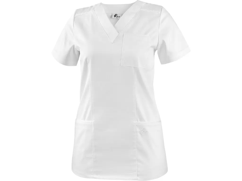 Bluzka CXS TARA damska biała to wygodna i praktyczna odzież robocza przeznaczona dla personelu medycznego oraz pracowników branży opiekuńczej. Model zapewnia komfort pracy przez cały dzień, a jednocześnie prezentuje estetyczny i profesjonalny wygląd.