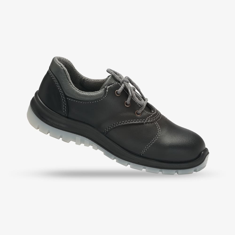 - podeszwa dwuwarstwowa (PU/TPU): bieżnik wykonany z litego transparentnego poliuretanu termoplastycznego, międzypodeszwa wykonana ze spienionego poliuretanu komórkowego, odporna na oleje, benzynę i inne rozpuszczalniki organiczne