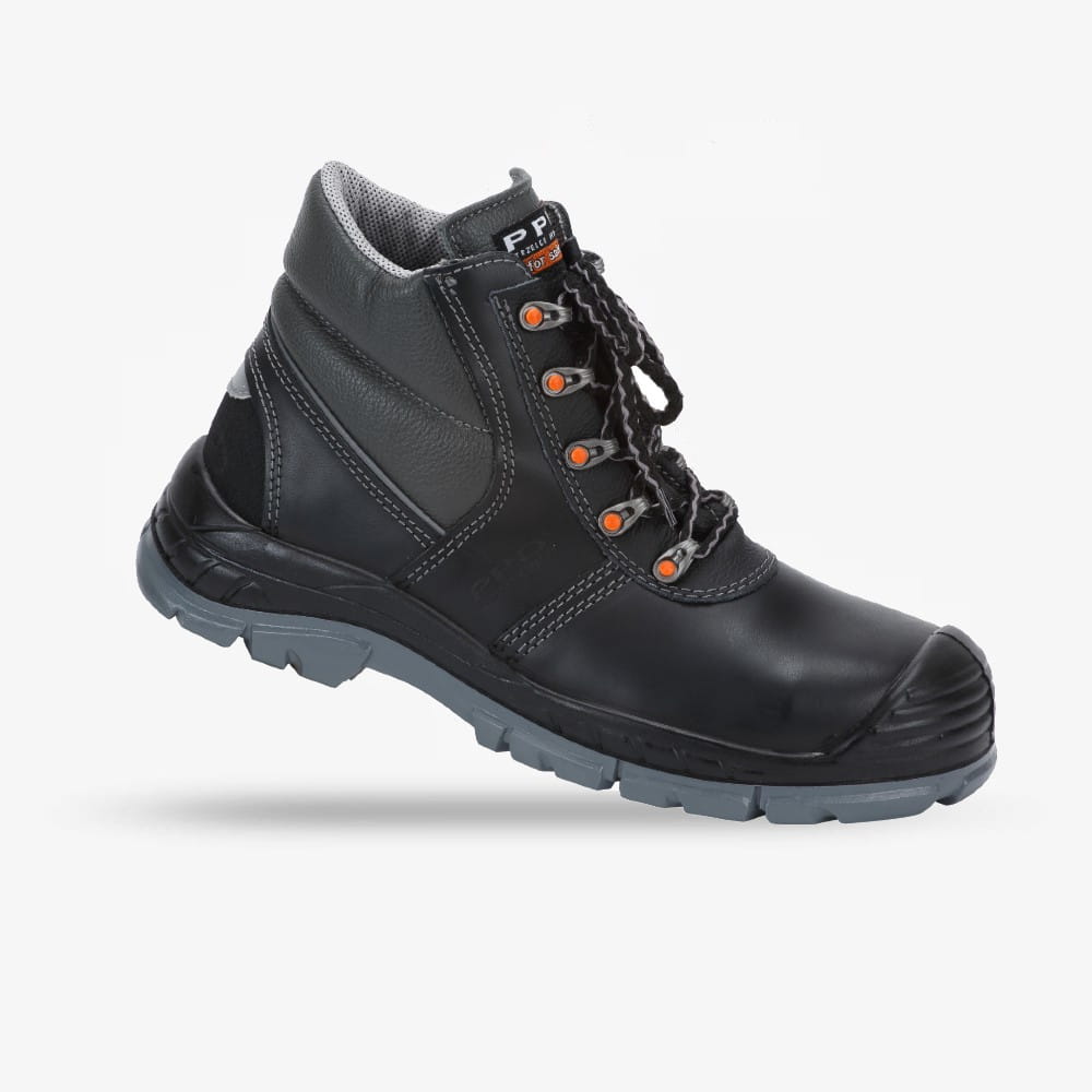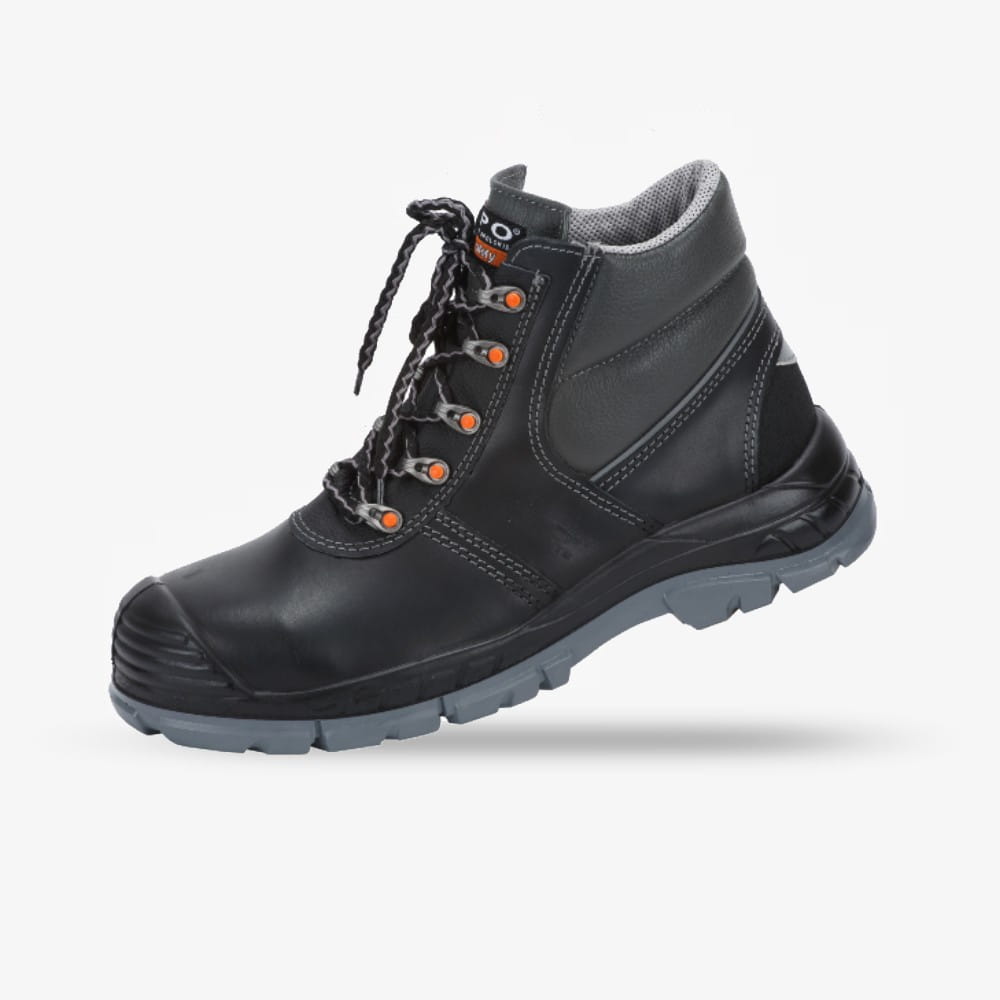 Wykonane z wysokiej jakości skóry licowej o zmniejszonej nasiąkliwości wody i wysokiej przepuszczalności pary wodnej, zapewniają trwałość, ochronę i oddychalność. Komfort użytkowania podnosi miękki kołnierz ze skóry, półmiechowy język oraz elementy odblaskowe poprawiające widoczność pracownika.