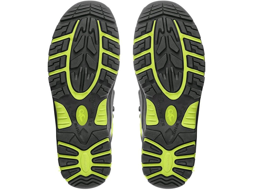 Materiał: cholewka z 1,6 – 1,8 mm dwoiny nubukowej (z jednego kawałka), TPU napiętek ochronny, bez elementów metalowych, podszewka z włókniny przewiewnej odpornej na ścieranie, podeszwa: PU-guma, olejoodporna, antystatyczna, przeciwpoślizgowa, odporna na przebicie i ciepło kontaktowe do 300°C.