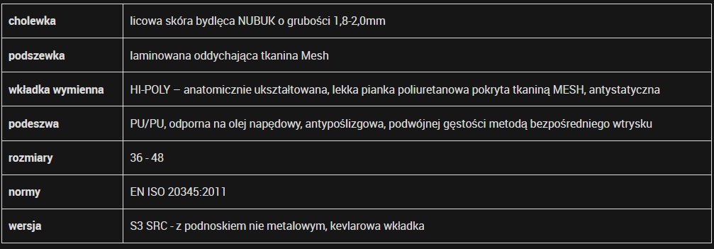 WERSJA S3 SRC – z podnoskiem nie metalowym, kevlarowa wkładka