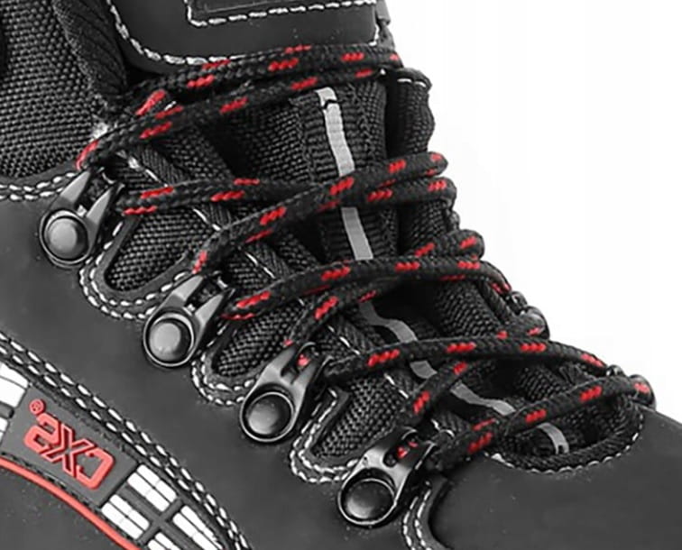 Trzewiki skórzane ze stalowym noskiem i wkładką, PCV pasek odblaskowy. Materiał: cholewka wykonana z 1,6 - 1,8 mm hydrofobowej skóry nubukowej w kombinacji z PU dodatkami, podszewka z włókniny przewiewnej odpornej na ścieranie, podeszwa: PU-guma, olejoodporna, antystatyczna, przeciwpoślizgowa, odporna na przebicie i ciepło kontaktowe do 300°C.