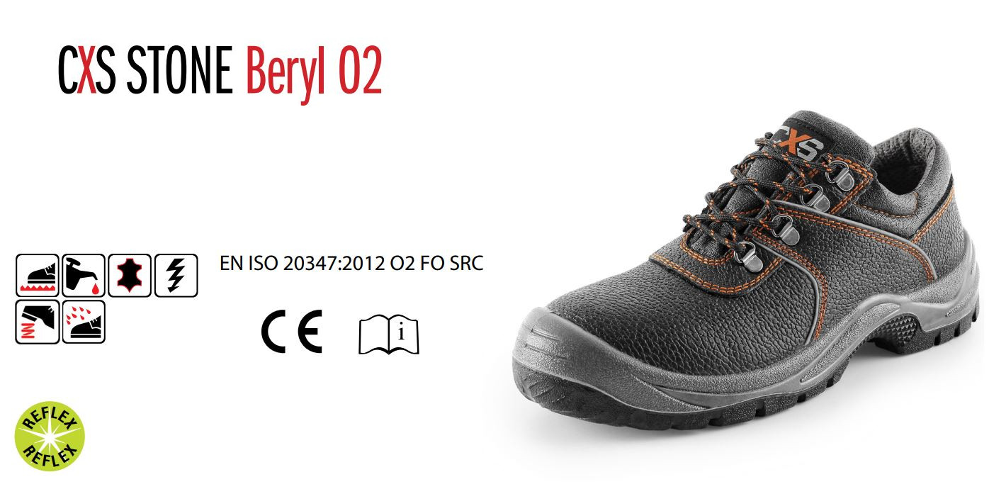 CXS Stone Beryl O2 to wygodne i wytrzymałe półbuty robocze przeznaczone do pracy w środowiskach o niższym ryzyku mechanicznym. Wykonane z hydrofobowej skóry bydlęcej, oferują skuteczną ochronę przed wilgocią, dobrą wentylację oraz wysoki komfort noszenia przez cały dzień.