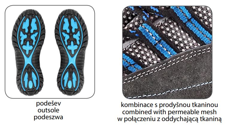 Materiał: cholewka z bydlęcej skóry szlifowanej kombinowana z siatką włókienniczą, podszewka z przewiewnego materiału tekstylnego, podeszwa phylon’owa.