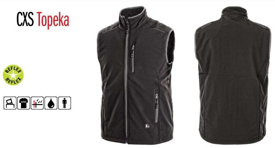 Kamizelka męska softshell CXS Topeka haft, logo czarna