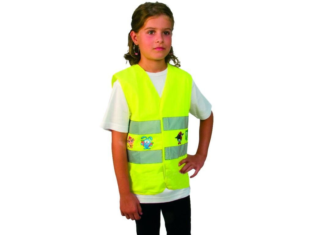 Na rower, spacer, wycieczki. Możliwość wykonania nadruku. Kamizelka z dwoma pasami odblaskowymi i kolorowymi postaciami.