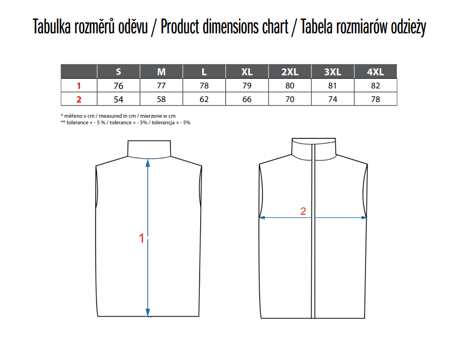 Męska kamizelka ocieplana, przedłużona z tyłu, zapinanie na zatrzaski, 4 zewnętrzne kieszenie z patką, kieszeń na zamek na piersi, elementy odblaskowe.