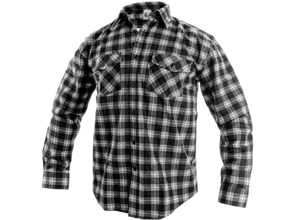 Wyrazista szaro-czarna krata podkreśla męski charakter koszuli i doskonale komponuje się z odzieżą roboczą lub jeansami. To uniwersalny wybór dla każdego, kto ceni wygodę, trwałość i ponadczasowy wygląd.