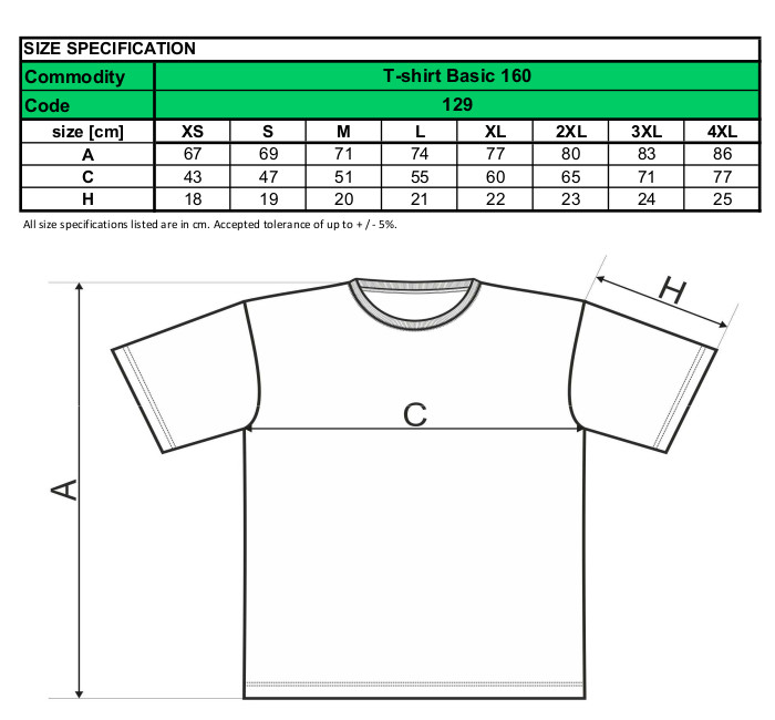 Wysokiej jakości koszulka o średniej gramaturze. Dekolt z dodatkiem 5% elastanu i taśmą wzmacniająca ramiona. Odpowiednia do nadruku i haftów. Wykónczenie silikonowe. Bez szwów po bokach.
