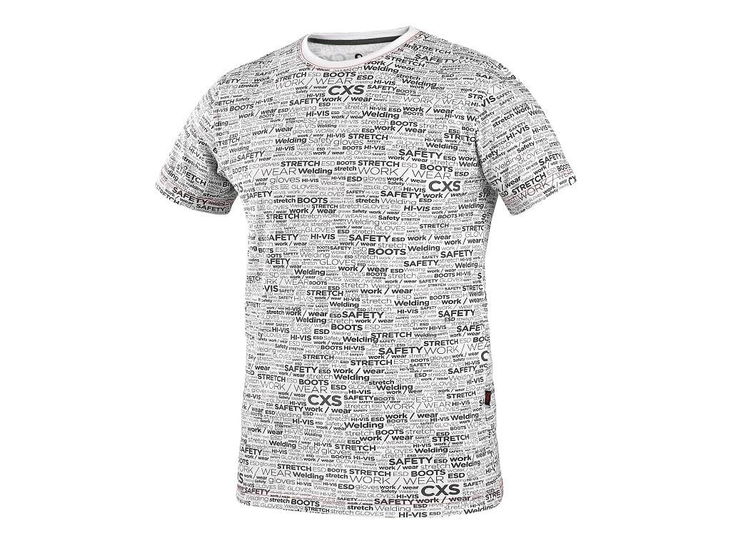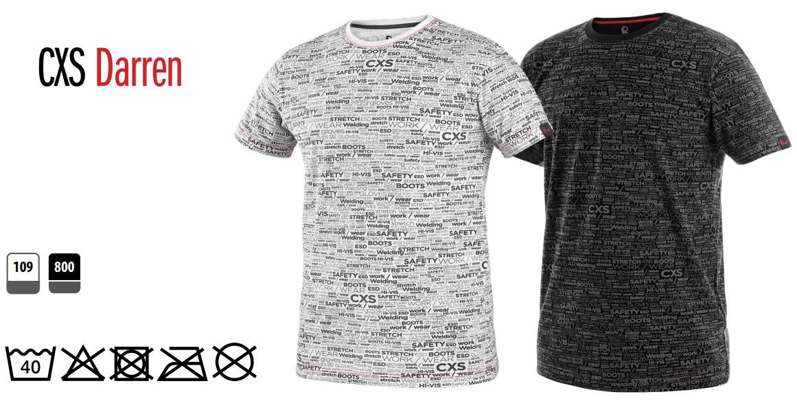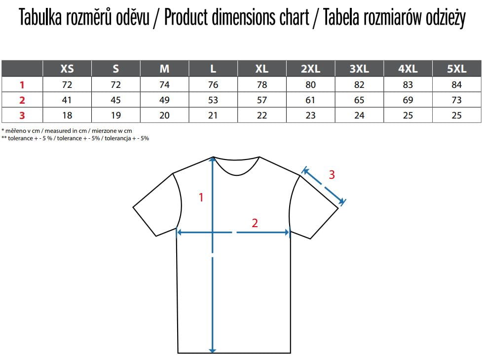 Okrągły dekolt. Czerwone szwy na rękawach i z dołu koszulki. Dekolt z wzmacniającym paskiem w kolorze szarym/czerwonym. Podrukowana tkanina, wykończenie silikonowe zapewnia trwałość rozmiarową i redukuje pilling.