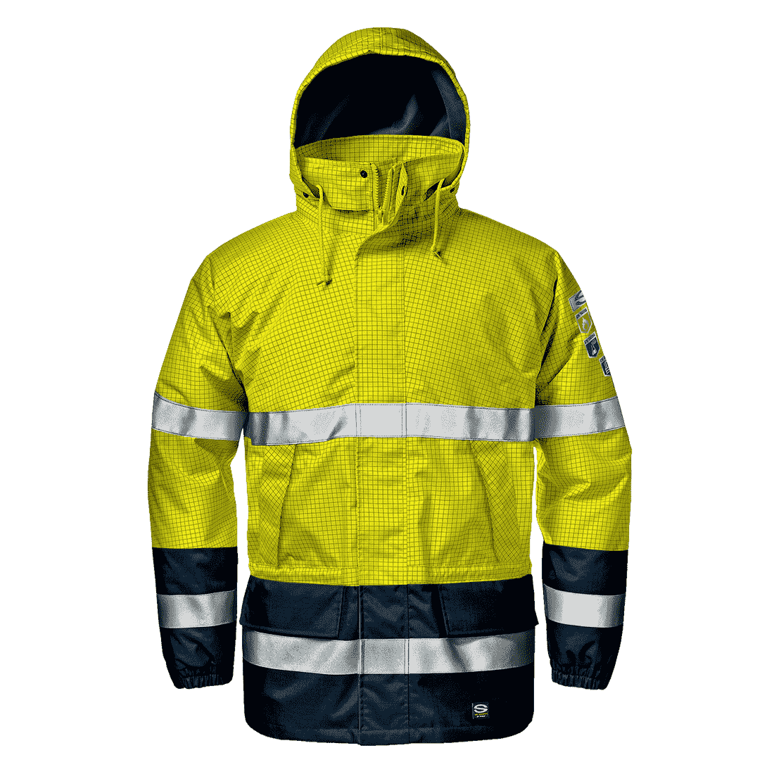 Dwukolorowa konstrukcja odblaskowa spełnia normę EN ISO 20471 Klasa 3, dlatego zapewnia maksymalną widoczność zarówno w dzień, jak i po zmroku. Materiał zewnętrzny wykonano w 98% z poliestru powlekanego PU oraz w 2% z włókna przewodzącego. Podszewka 100% FR oraz wyściółka z poliestru dodatkowo zwiększają bezpieczeństwo i komfort cieplny.