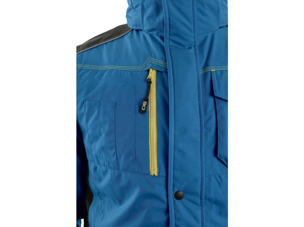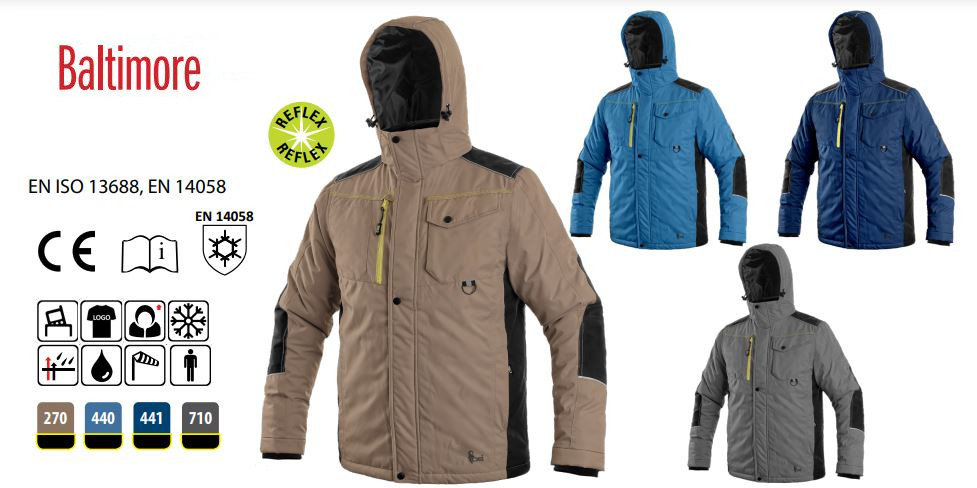 Odporna na działanie wody i wiatru, odpinany kaptur, mankiety wewnętrzne w rękawach, oczko plastykowe pod górną kieszeni, ściąganie na dole, klejone szwy, TPU membrana, elementy odblaskowe. Kieszenie na piersiach zapinane na na zamek i zatrzaski, dwie kieszenie dolne zapinane na zamek, 3 kieszenie wewnętrzne.