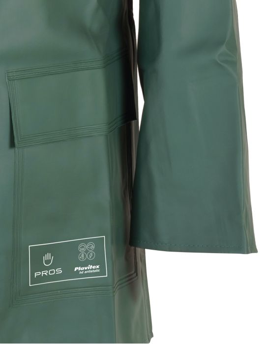 Kurtka robocza męska Pros 101 to niezawodna odzież robocza, która zapewnia pełną ochronę w deszczowe i wietrzne dni. Wykonana z wytrzymałej tkaniny Plavitex, która jest jednostronnie powlekana PCV. Materiał ten gwarantuje wysoką odporność na rozdzieranie, a także zachowuje elastyczność nawet w temperaturze –50°C.
