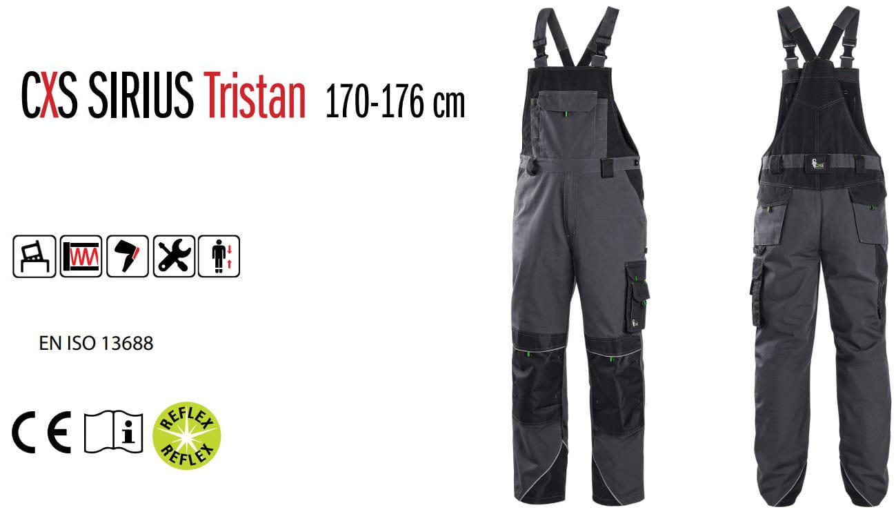 Męskie ogrodniczki, 170-176 cm, CXS Sirius Tristan szaro-zielone