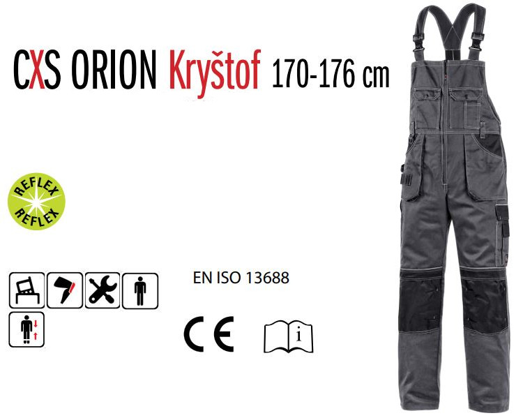 Męskie ogrodniczki CXS Orion Krystof 170-176 cm, szare