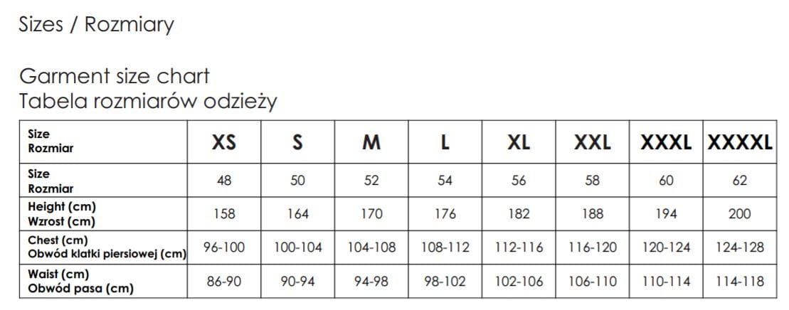 Rozmiar: 48, 50, 52, 54, 56, 58, 60, 62