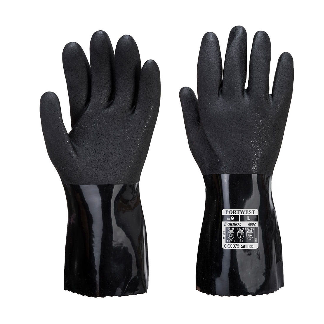 Najwyższej jakości rękawica chemiczna oraz ESD wykonana z PCV. Zaprojektowana do użytku w obszarach, w których gromadzenie się ładunków elektrostatycznych może stanowić poważne zagrożenie. Doskonała zręczność dzięki pewnemu uchwytowi wynikającemu z piaskowanego wykończenia dłoni. Bezszwowy podkład zapewnia komfort i elastyczność. Ochrona chemiczna w warunkach zagrożenia wybuchem.
