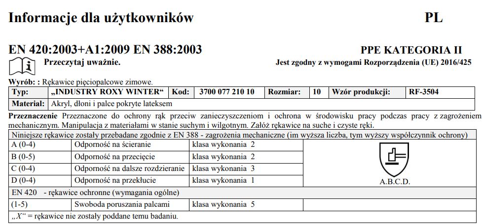 | Normy | EN 420, EN 388 |