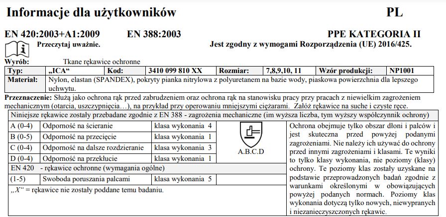 Zalecane zastosowanie: przemysł samochodowy, logistyka, gospodarka magazynowa, praca z gorącymi przedmiotami do 100°C, hobby, manipulacja i praca z śliskimi przedmiotami, ogród, budownictwo, usługi komunalne, montaż i pakowanie małych części.
