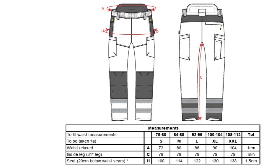 Spodnie spełniają wymagania norm EN ISO 20471 oraz posiadają certyfikat CE, dzięki czemu są odpowiednim wyborem jako profesjonalna odzież BHP.