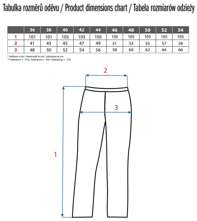 Spodnie spełniają wymagania normy BHP EN ISO 13688:2013 dotyczącej ogólnych wymagań dla odzieży roboczej. Produkt posiada deklarację zgodności CE, która potwierdza zgodność z obowiązującymi przepisami UE.