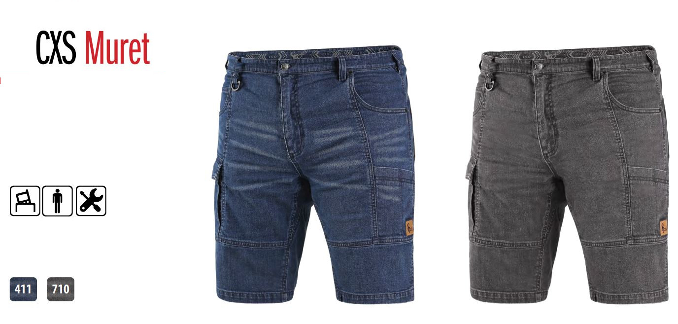 Spodnie robocze krótkie męskie, jeansowe CXS Muret niebieskie