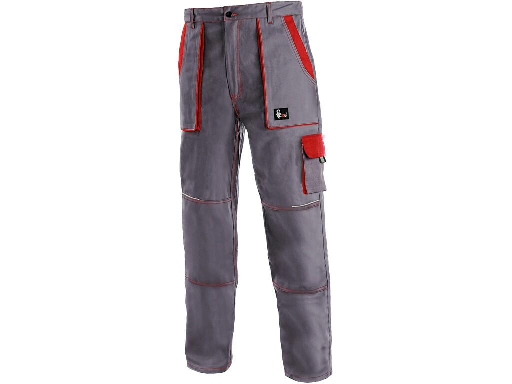 Spodnie robocze męskie CXS Luxy Josef – szaro-czerwone, wzmocnione kolana, kieszenie, odblaski