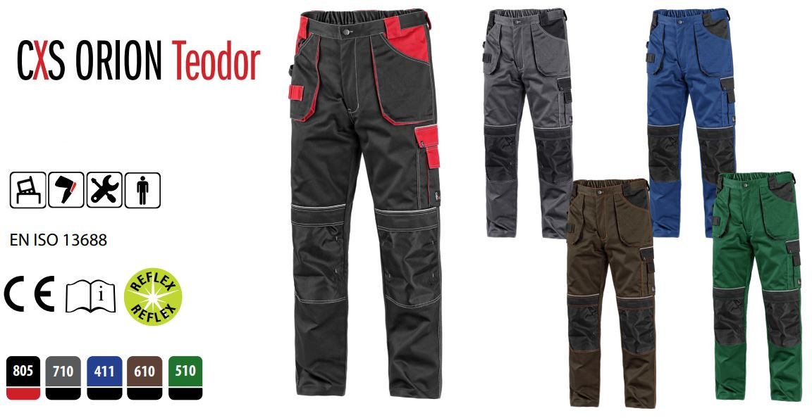 Męskie spodnie robocze, pas ze szlufkami na pasek, z tyłu wszyta guma, przednie kieszenie ze szlufkami na narzędzia, kieszenie wielofunkcyjne z obu stron, kolana wzmocnione poliestrem 600D z możliwością włożenia nakolanników, dwie tylne kieszenie, jedna na rzep, elementy odblaskowe. Zalecane zastosowanie: budownictwo, inżynieria, przemysł lekki, przemysł samochodowy, logistyka, magazyn, spedycja, garaż, konserwacja, montaż, rolnictwo, ogród, hobby.