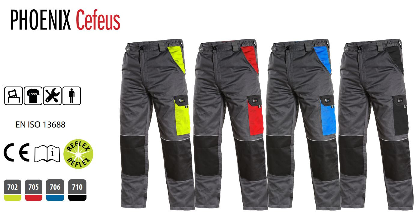 Z lekkiego materiału, pas ze szlufkami na pasek, z boku wszyta guma, kieszenie klinowe z przodu, kieszeń boczna z patką, kieszeń metr taśmowy / składany, podwójne kolana, zwykła kieszeń z tyłu, elementy odblaskowe. Dzięki lekkiej gramaturze nadaje się do pracy nie tylko latem, ale również przez cały rok w pomieszczeniach ogrzewanych.
