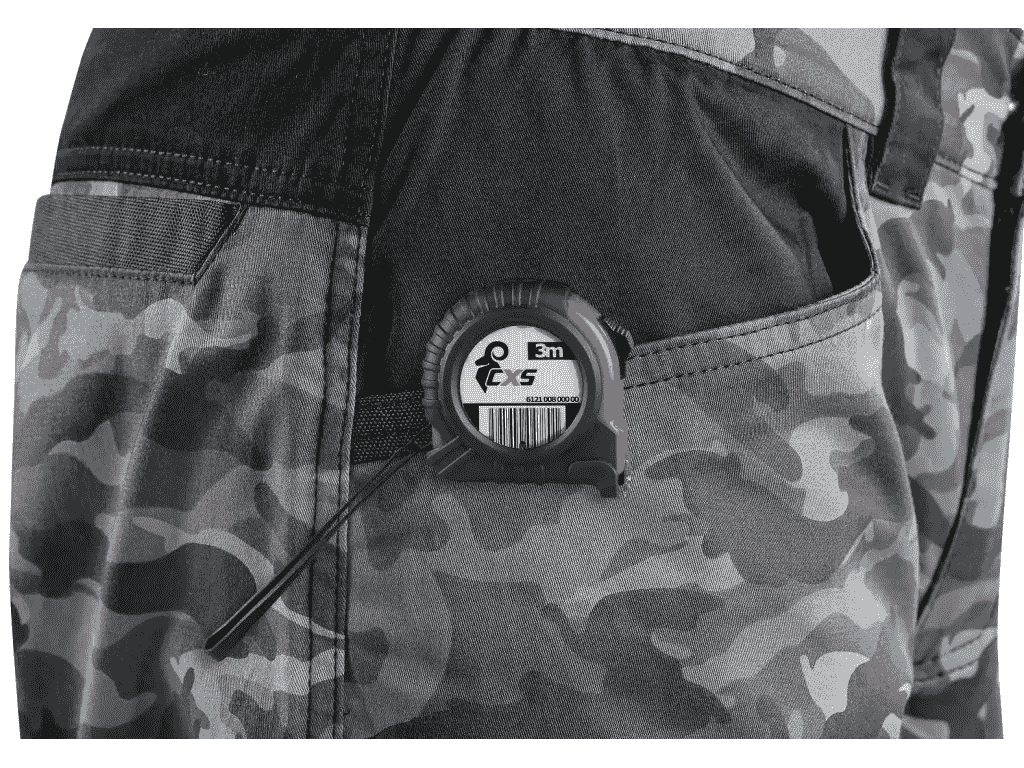 Dla większej odporności na przetarcia, spodnie posiadają ergonomiczne kolana wzmocnione materiałem 600D poliester. Liczne przednie, tylne i boczne wielofunkcyjne kieszenie, również wzmocnione poliestrem 600D, umożliwiają wygodne przechowywanie narzędzi i akcesoriów. Elementy odblaskowe poprawiają widoczność, zwiększając bezpieczeństwo pracy w słabym oświetleniu.
