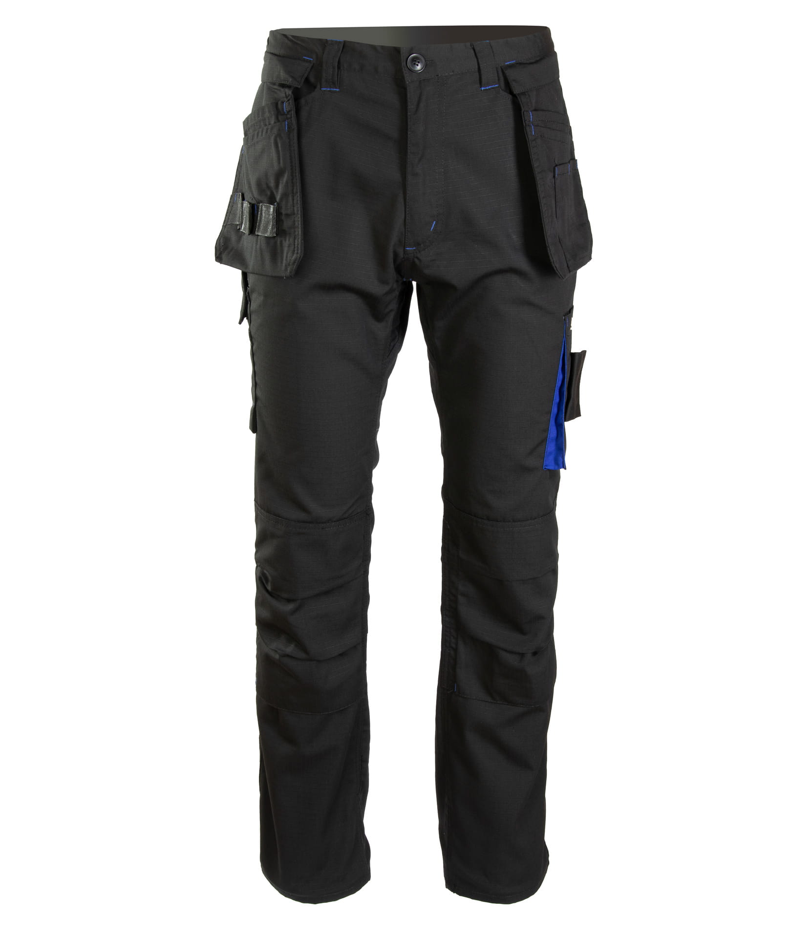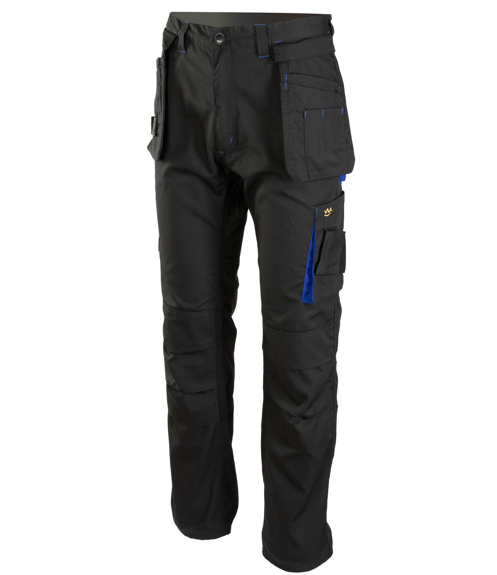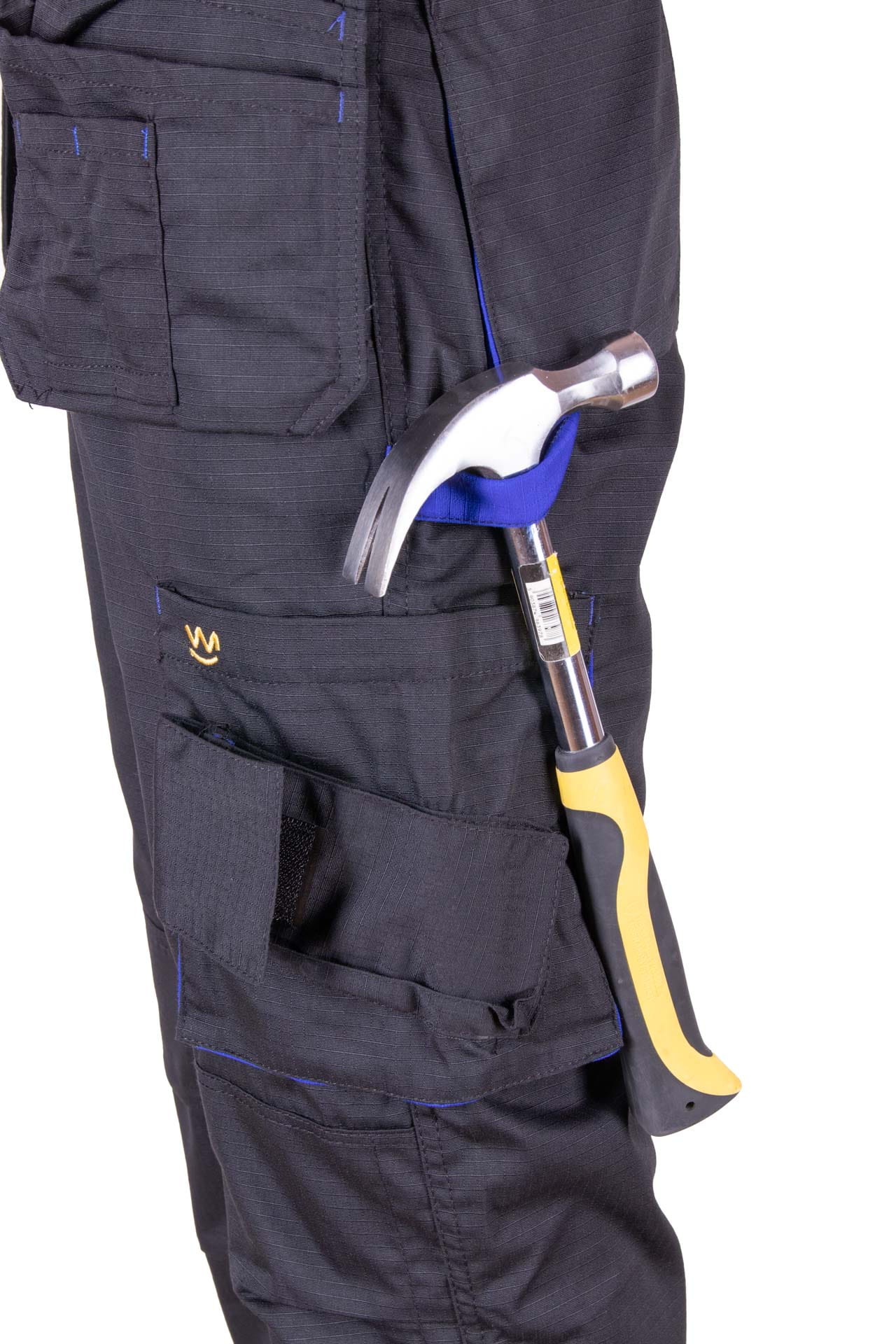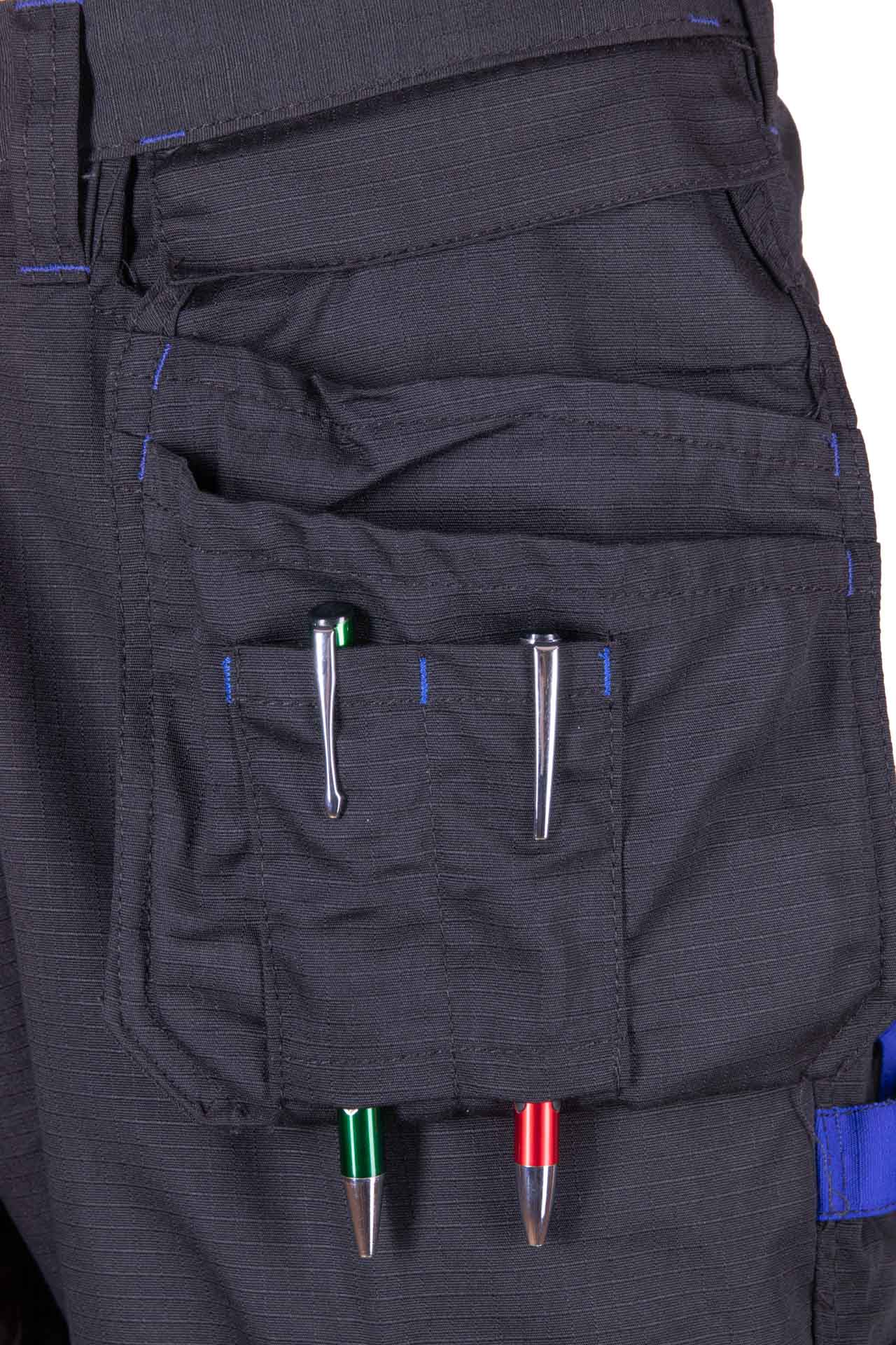 Kieszenie: dwie kieszenie w tylnej części spodni, przestrzenne kieszenie, dwie kieszenie boczne, wzmocnione kieszenie zapinane na rzepy, kieszeń na komórkę, kieszeń na dokumenty, kieszeń na dokumenty, kieszeń na miarę „metrówkę”, ergonomiczna kieszeń na nakolanniki, dwie kieszenie monterskie, dopinane na zamek,