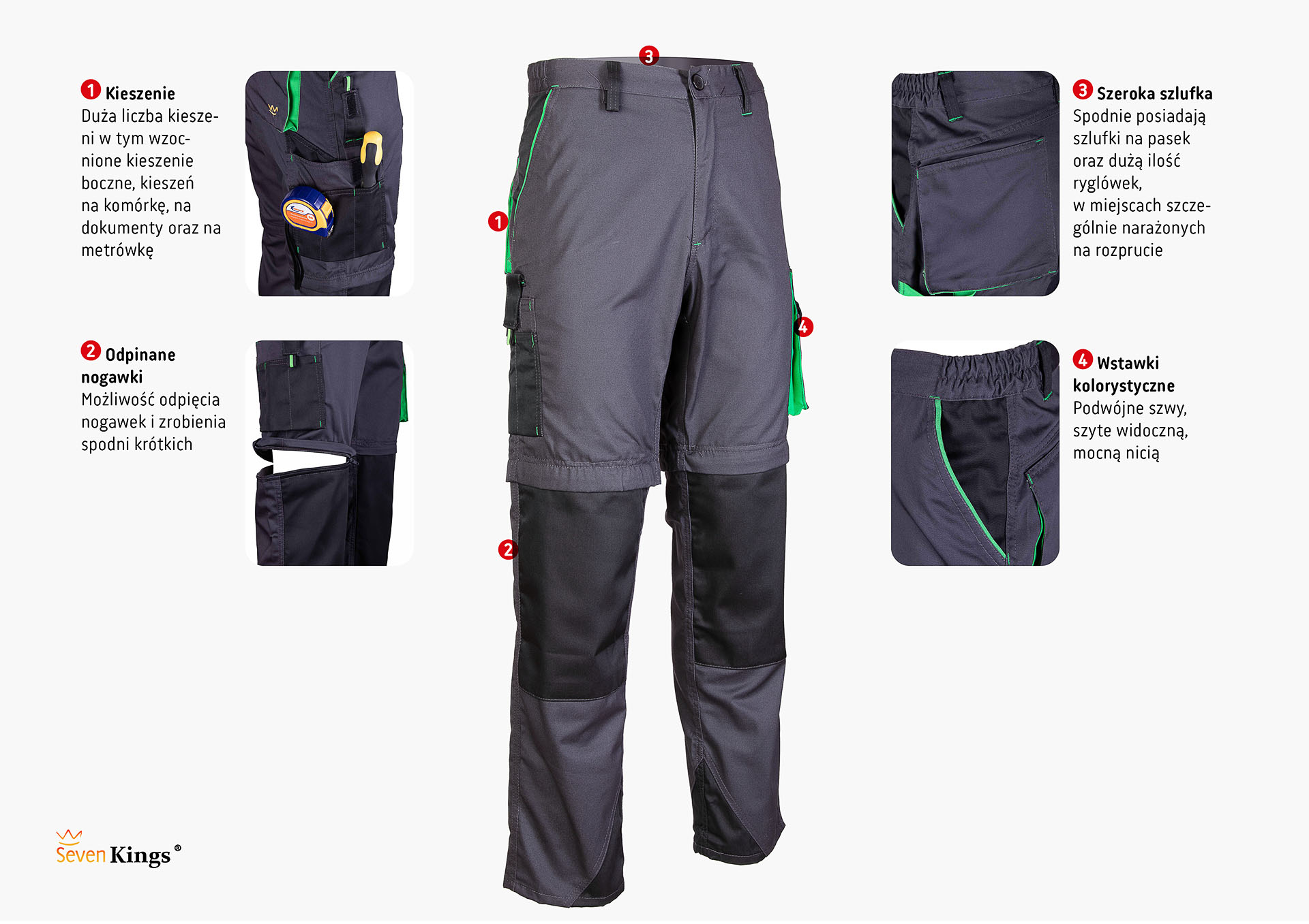 Spodnie robocze męskie do pasa 2w1 Seven Kings Onyx