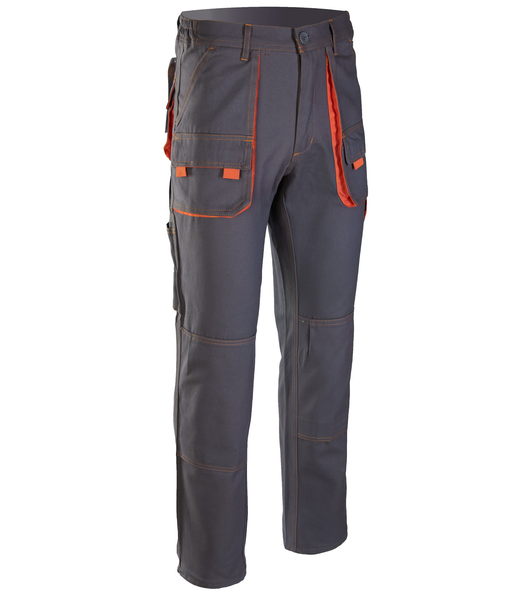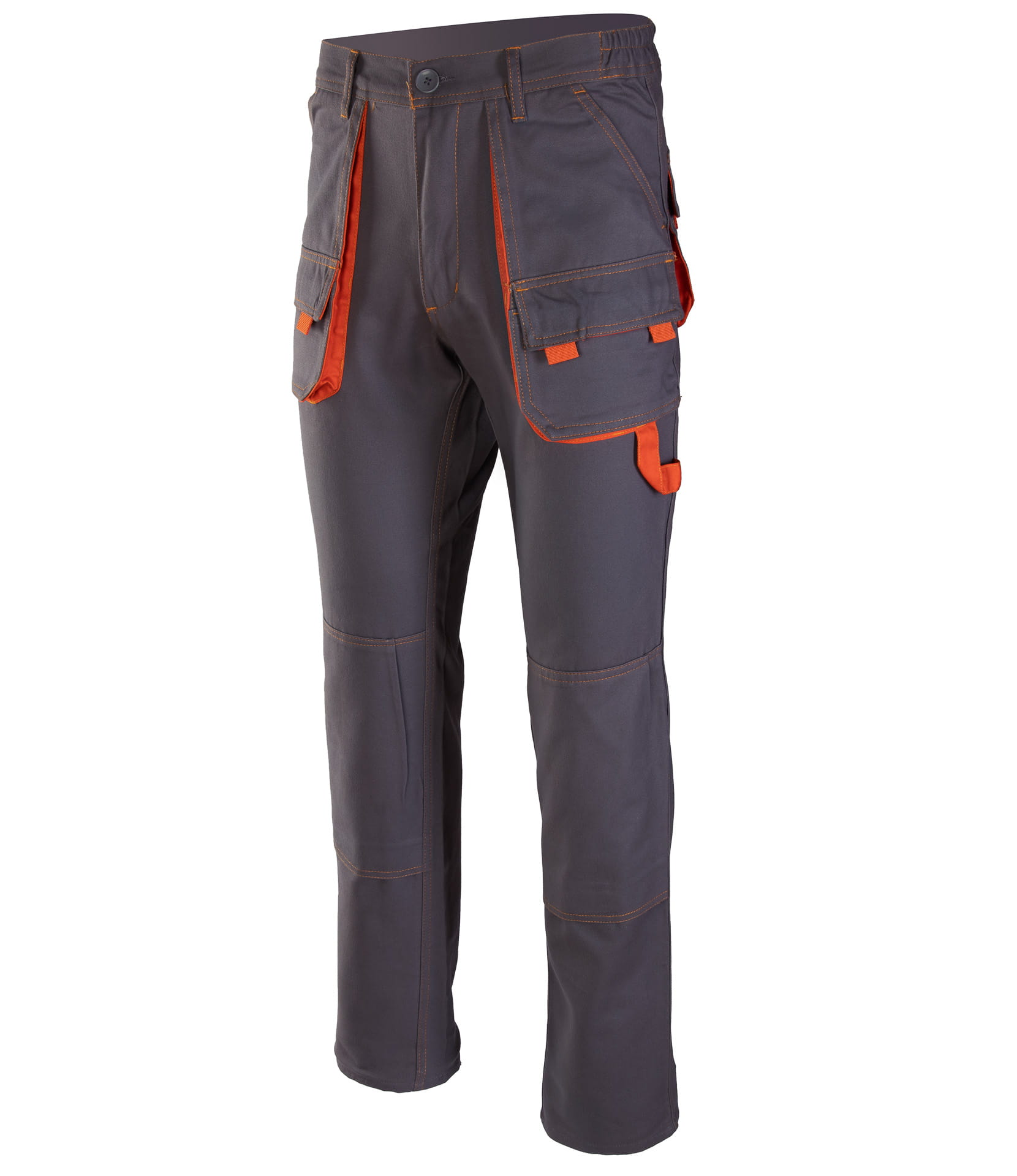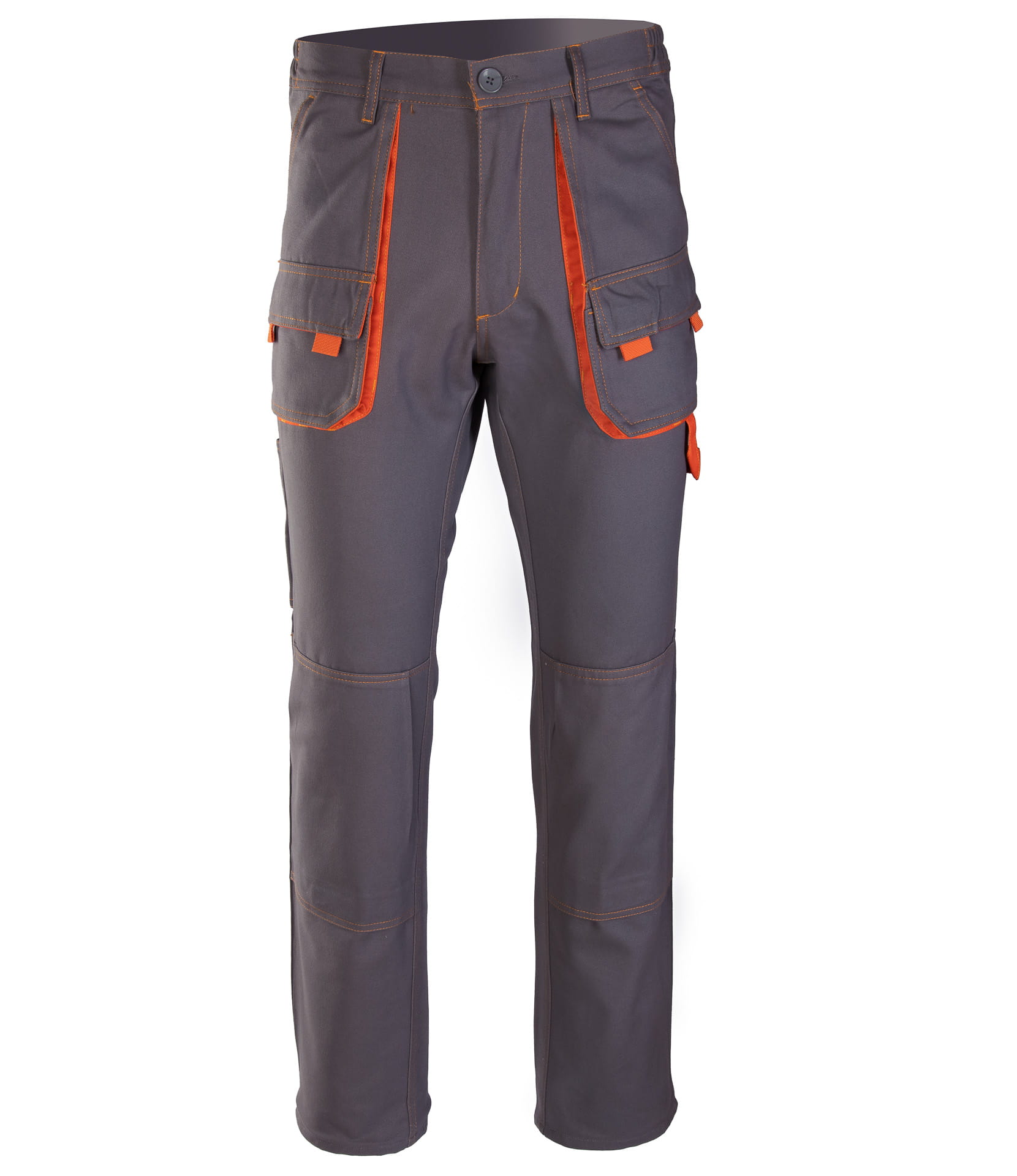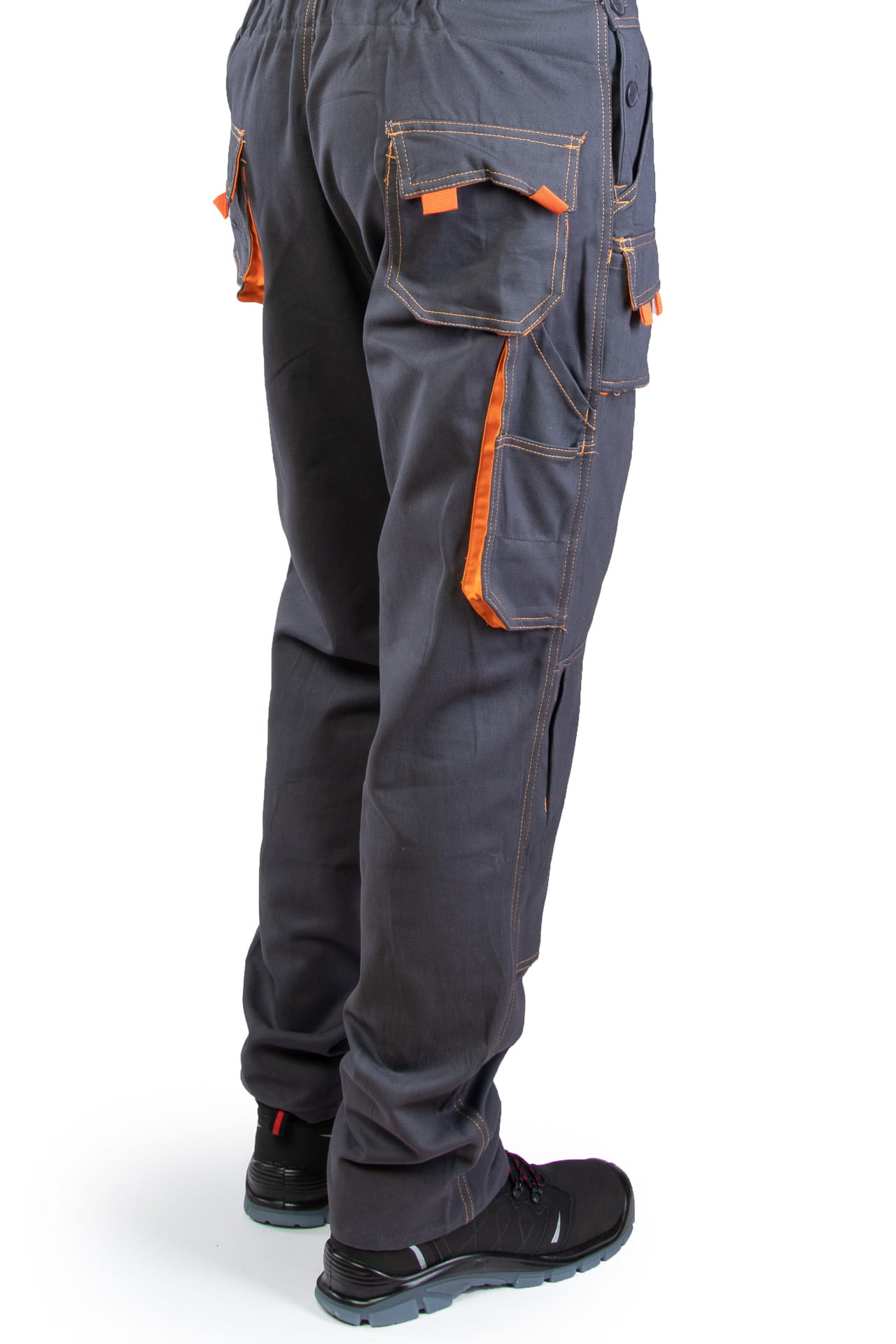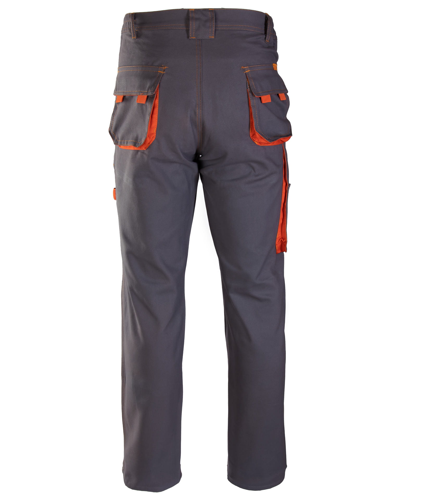 Budowa/szycie: podwójne szwy, szyte widoczną mocną nicią, duża ilość ryglówek w miejscach szczególnie narażonych na rozprucie, szuflada na młotek, spodnie posiadają szlufki na pasek, ergonomiczna kieszeń na nakolanniki,