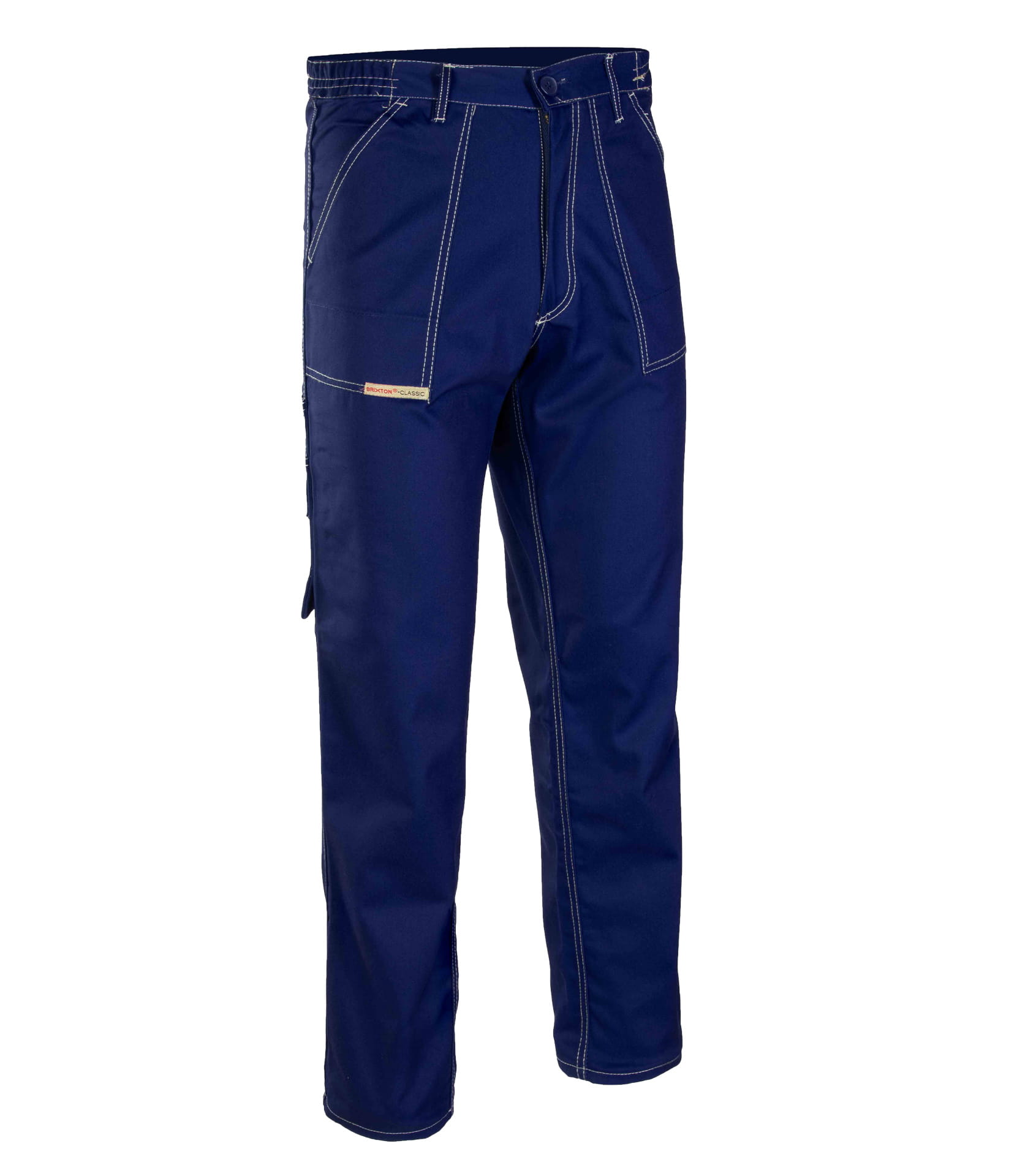 Spodnie robocze męskie wykonane z wysokiej jakości materiału, który zapewnia stabilność rozmiarów po wielokrotnym praniu