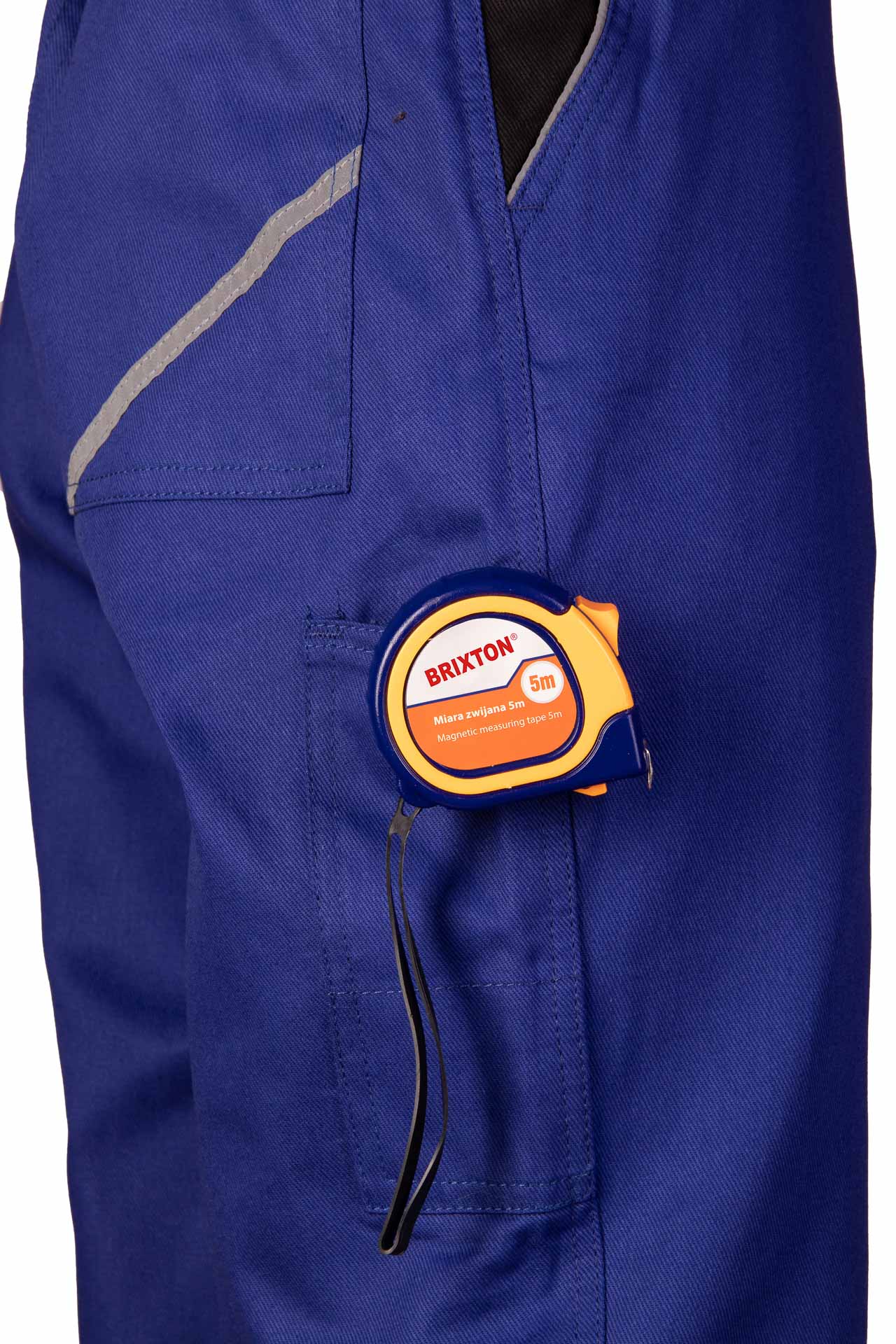 Kieszenie: kieszeń w tylnej części spodni, dwie kieszenie boczne, kieszeń na dokumenty kieszeń na miarę „metrówkę”,
