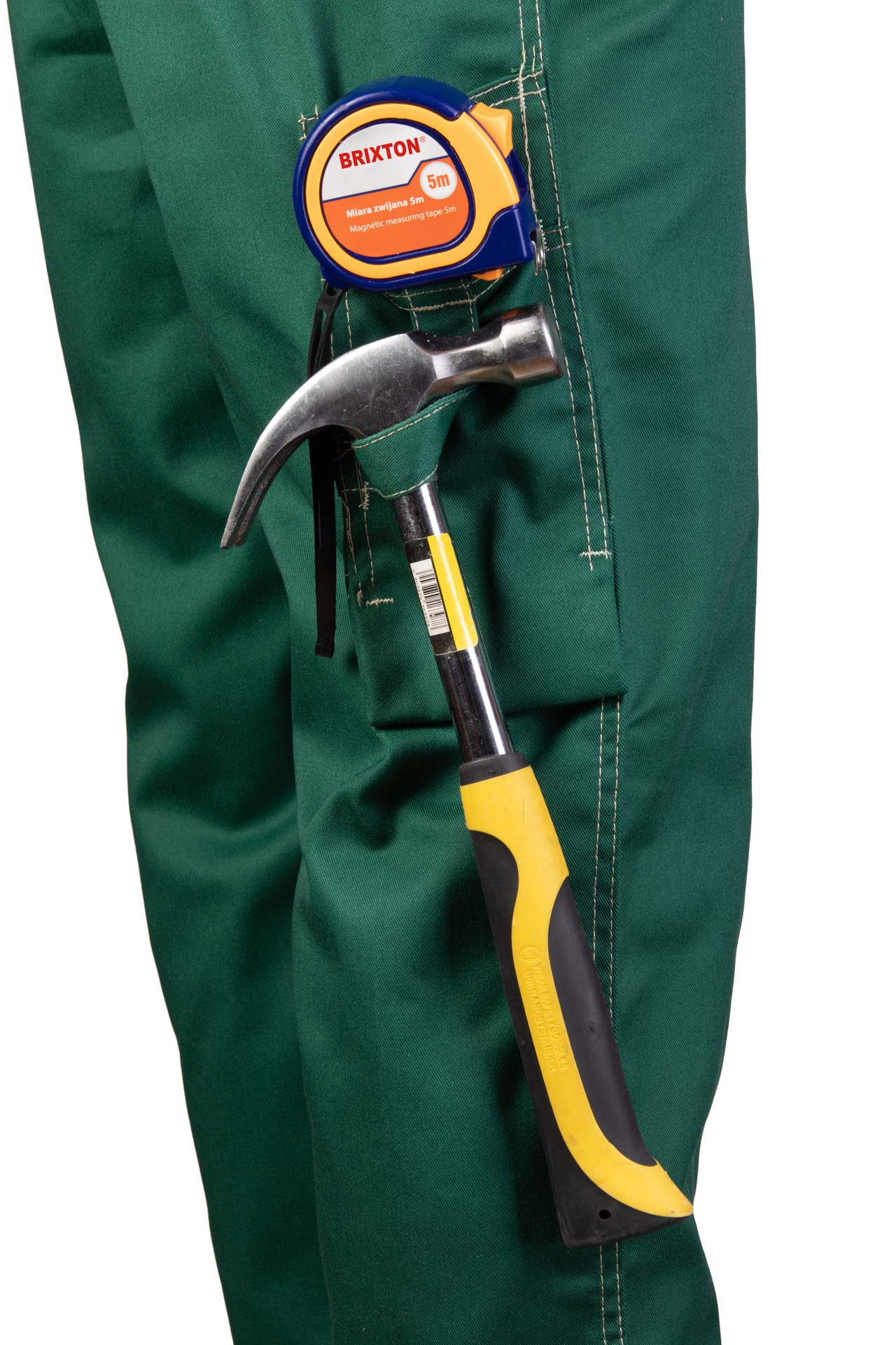 Spodnie robocze ogrodniczki wykonana z wysokiej jakości materiału, który zapewnia stabilność rozmiarów po wielokrotnym praniu,