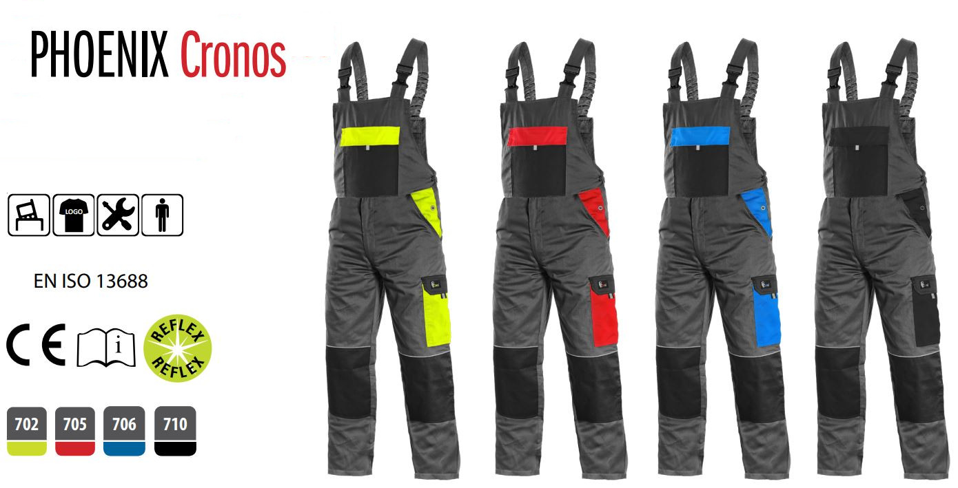 Spodnie robocze męskie ogrodniczki CXS Phoenix Cronos szare