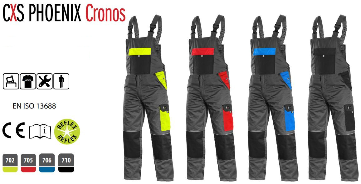 Spodnie robocze męskie ogrodniczki CXS Phoenix Cronos szaro-niebieskie