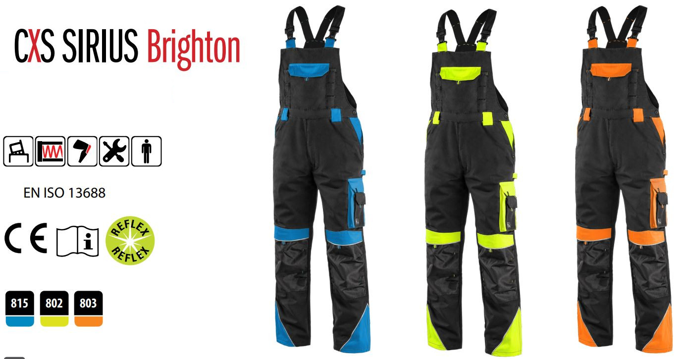 Spodnie robocze męskie ogrodniczki CXS Sirius Brighton czarno-niebieskie